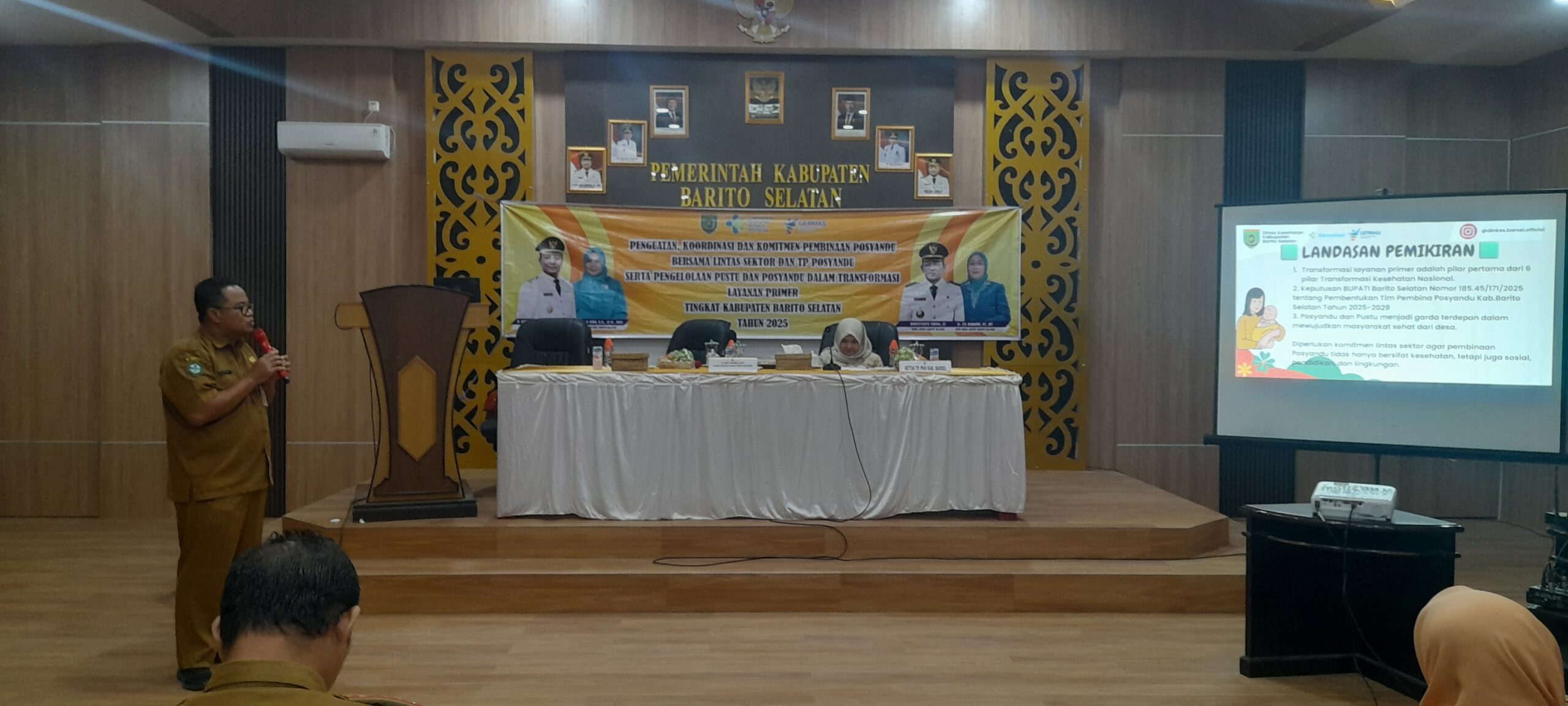 Buntok – Dinas Kesehatan (Dinkes) Kabupaten Barito Selatan (Barsel) melaksanakan kegiatan Penguatan Koordinasi dan Komitmen Pembinaan Posyandu bersama Lintas Sektor dan TP Posyandu serta Pengelolaan Postu dan Posyandu dalam Transformasi Layanan Primer Tingkat Kabupaten Barito Selatan Tahun 2025, bertempat di Aula Kantor Bupati Barsel, Senin (27/10/2025).