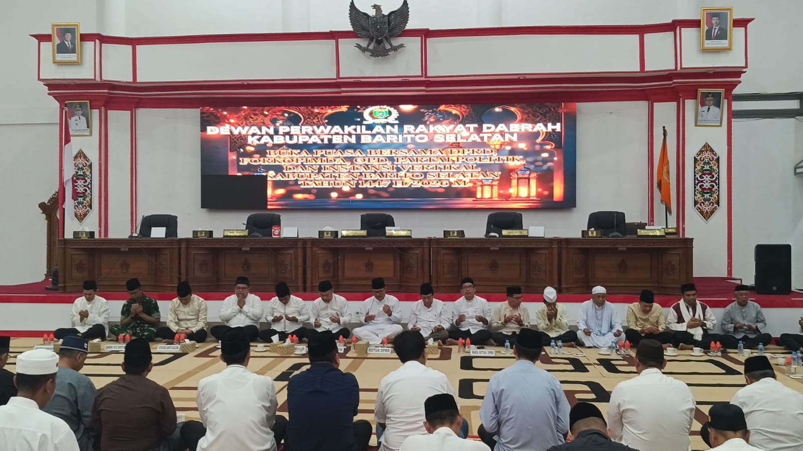 BUNTOK – Dewan Perwakilan Rakyat Daerah (DPRD) Kabupaten Barito Selatan (Barsel) menggelar kegiatan buka puasa bersama dengan Forum Koordinasi Pimpinan Daerah (Forkopimda), organisasi perangkat daerah (OPD), partai politik serta instansi vertikal di wilayah setempat. Kegiatan tersebut berlangsung di Gedung Graha Paripurna DPRD Barsel, Kamis Malam (12/3/2026).